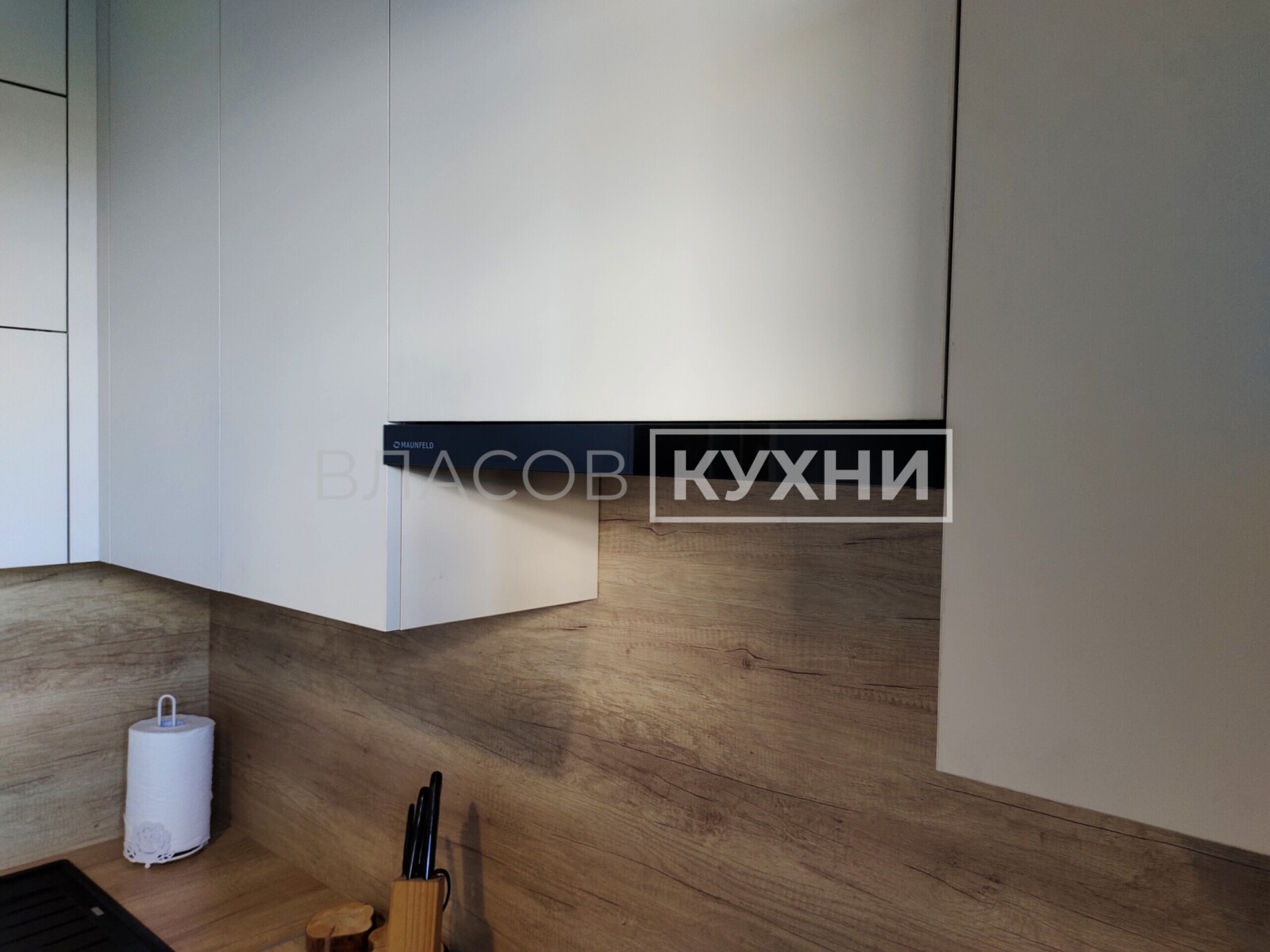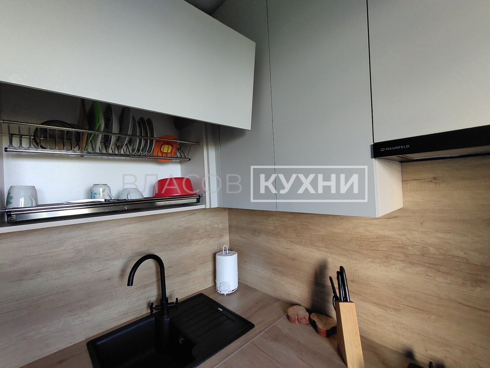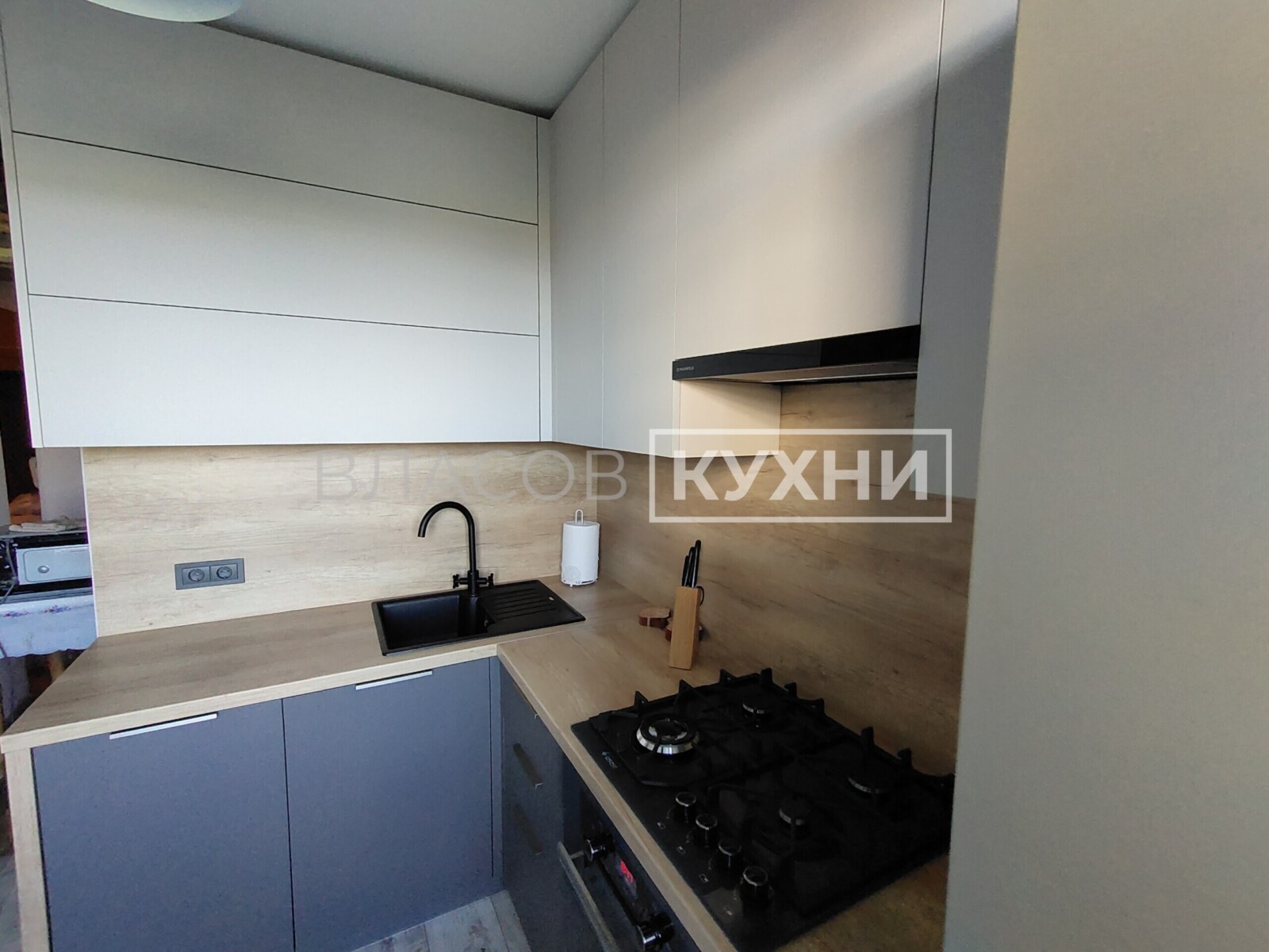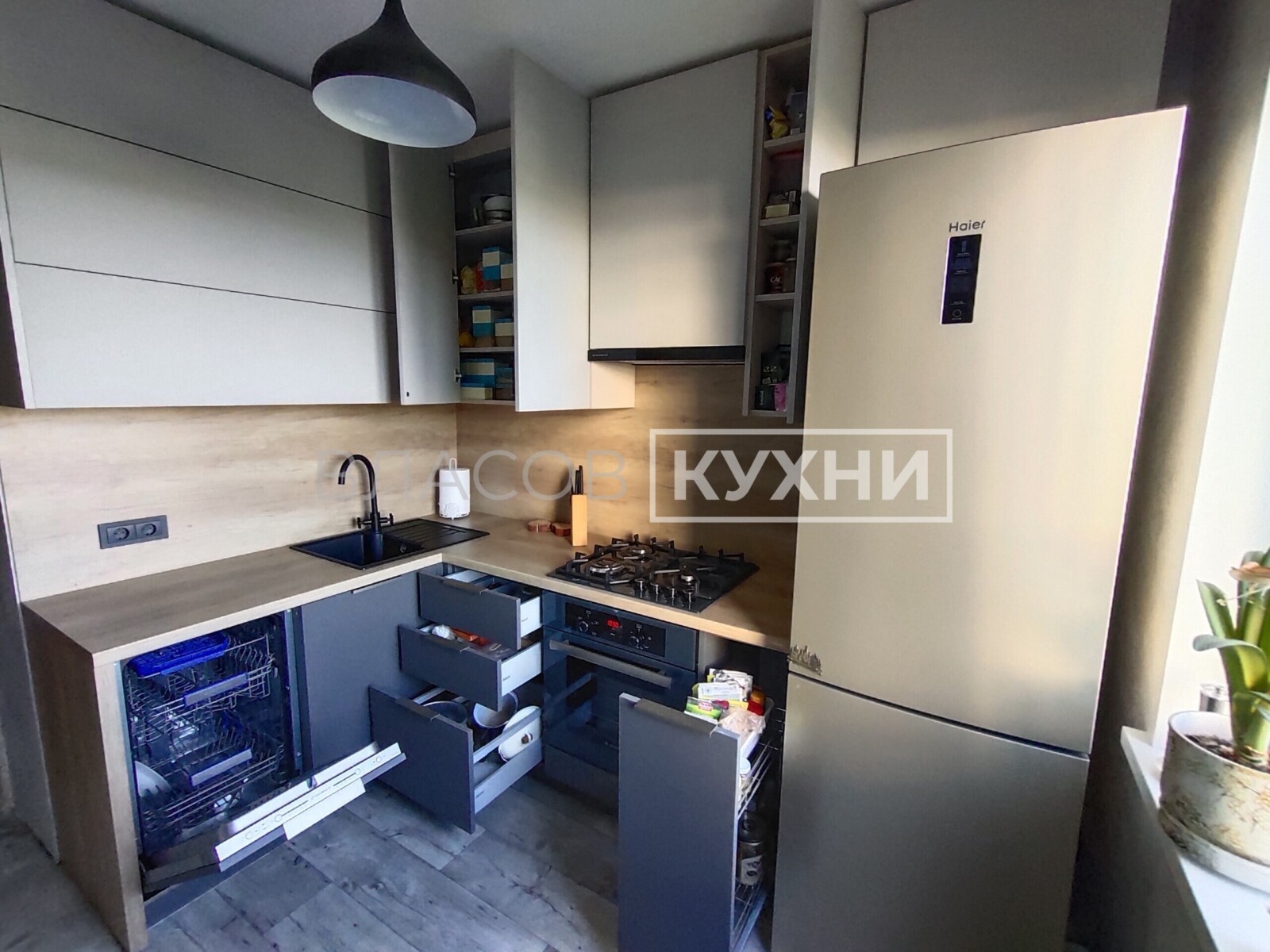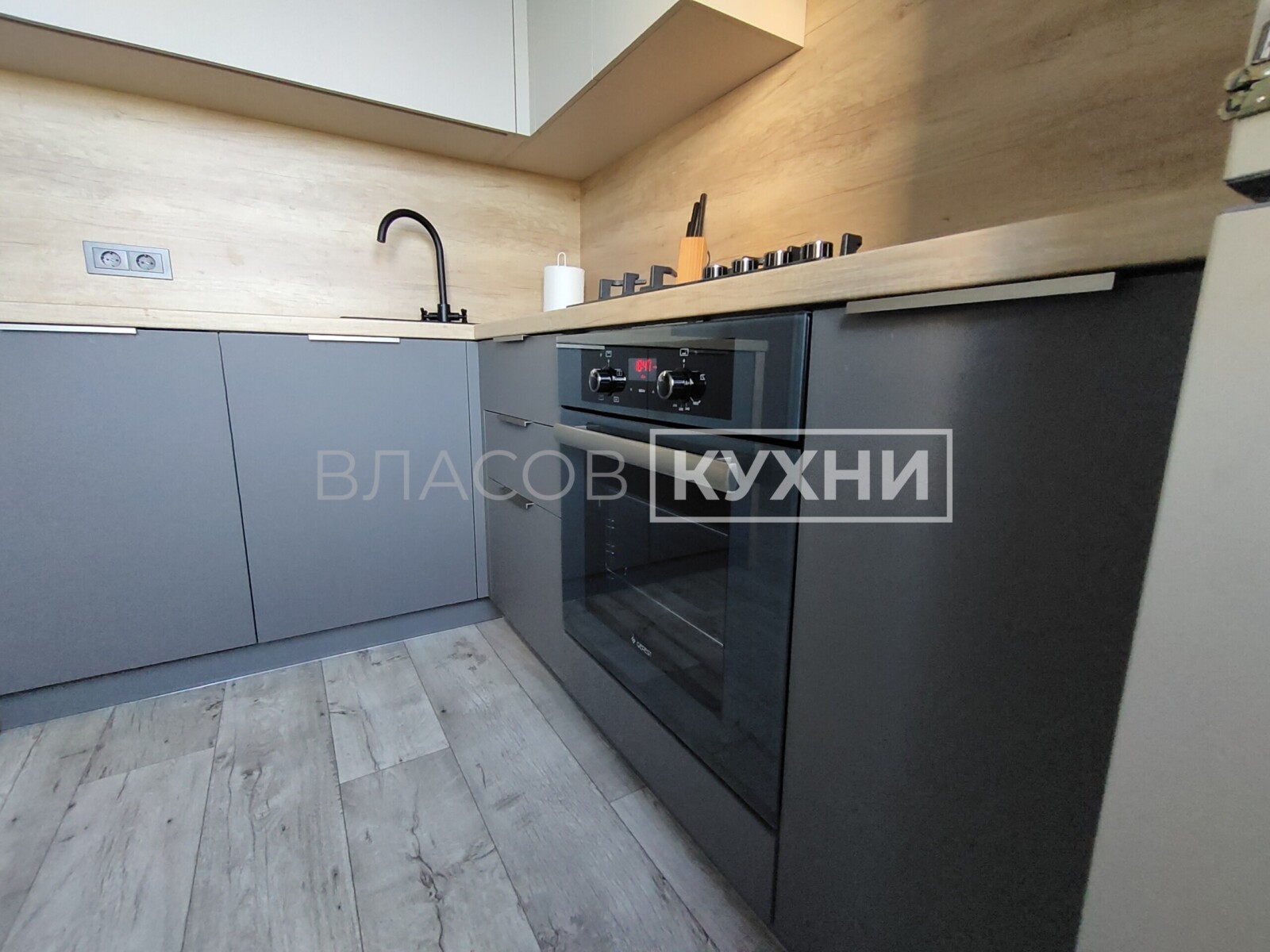 — Фасады шкафов: изготовлены из коллекции AGT Supramat с гладкой поверхностью, цвета 3019 Sahara Cream и 3022 Royal Grey придают кухне современный и утонченный вид.