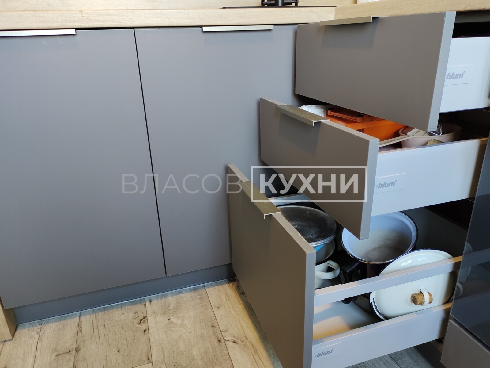 — Выдвижные системы и фурнитура: оснащены механизмами премиум-класса от бренда Blum, обеспечивающими плавность движения и надежность эксплуатации.