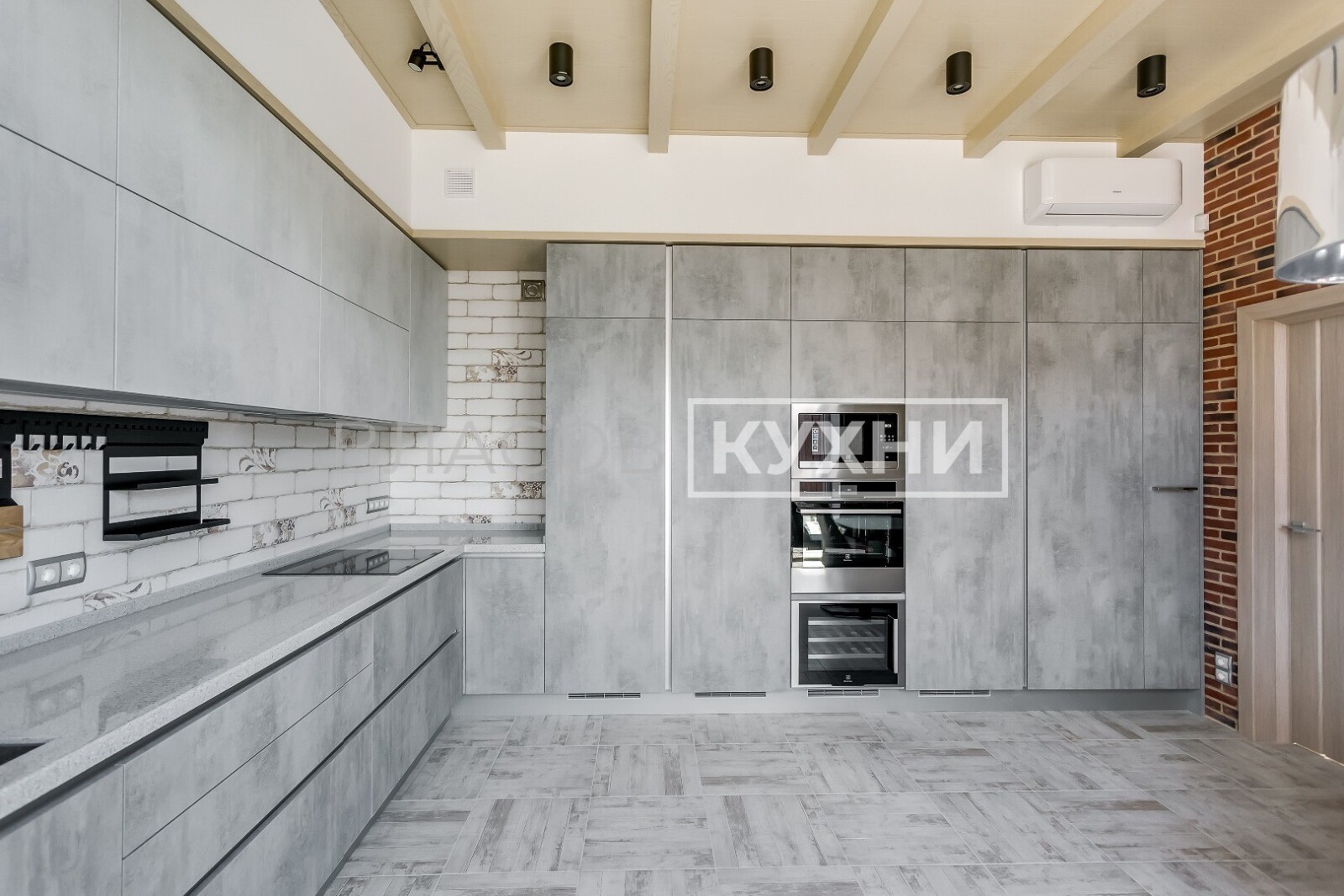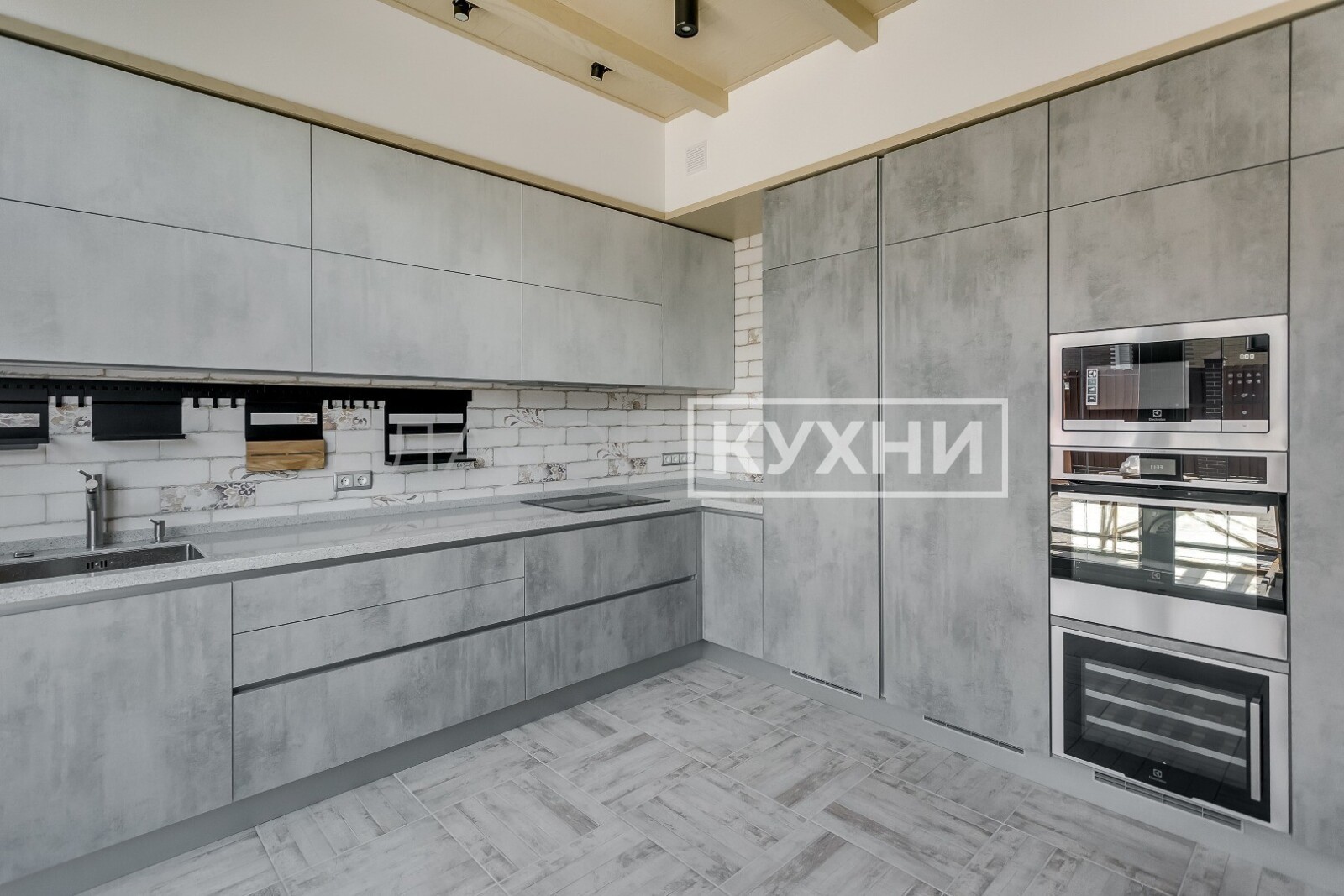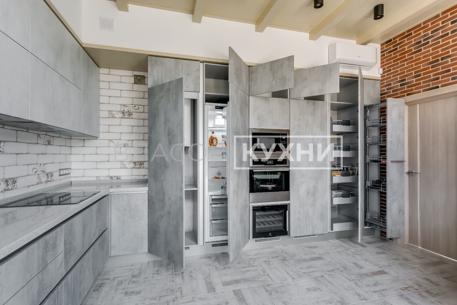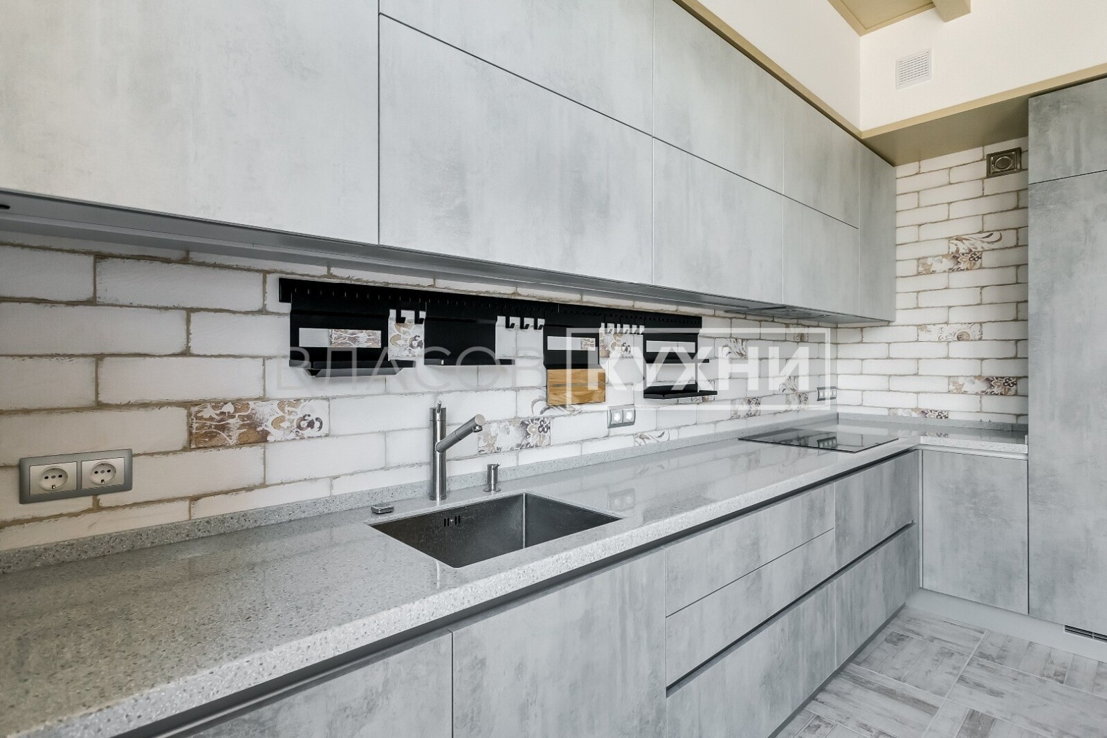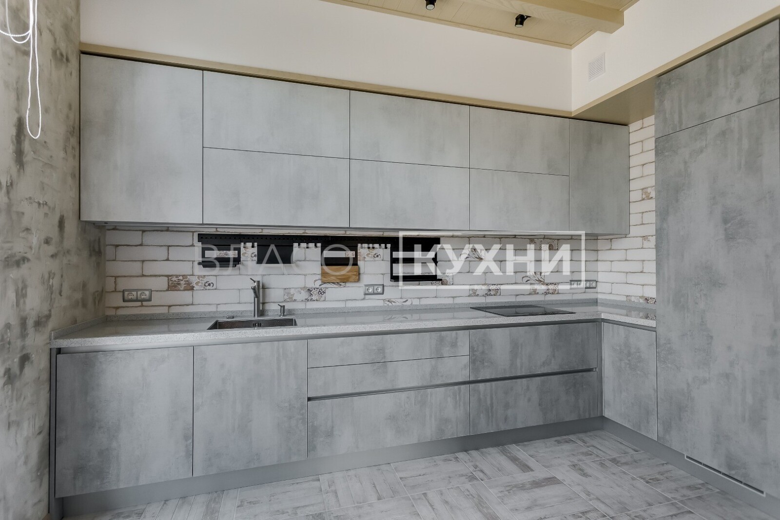 Кухня в стиле ЛОФТ с имитацией бетона.