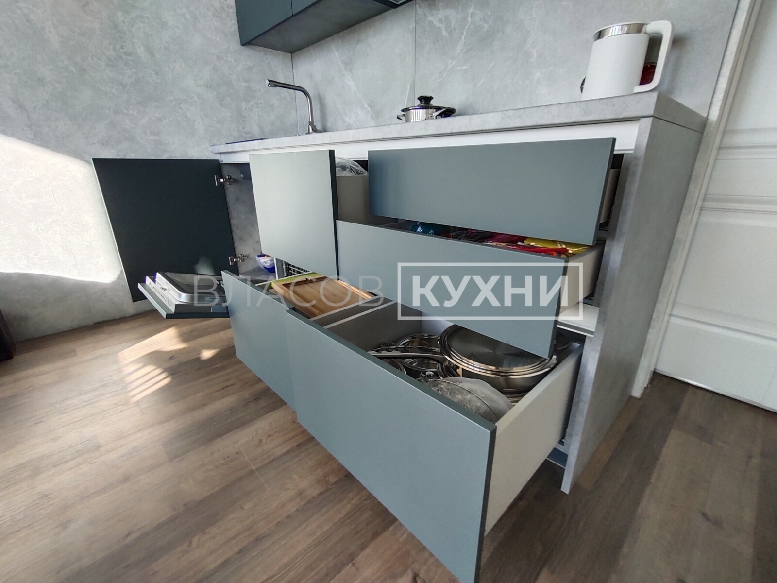 ⭐ Вместо ручек, использовали скрытый алюминиевый GOLO-профиль, зрительно облегчает конструкцию, безопасен для детей и всегда в тренде.