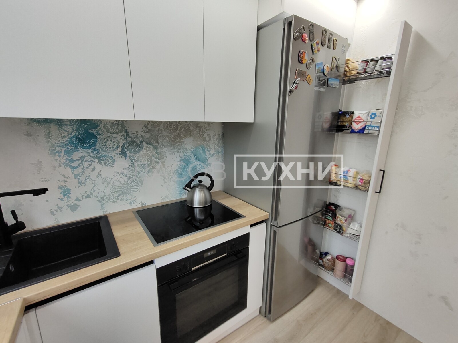 ⭐ В этот раз, перед нами стояла задача максимально увеличить рабочую зону и задействовать прилегающую стену. Для этого расстояние до начала окна было увеличено, что позволило сделать столешницу вместо подоконника.Также установили дополнительные шкафы для хранения, теперь столешница смотрится единым целым, расширяя пространство.