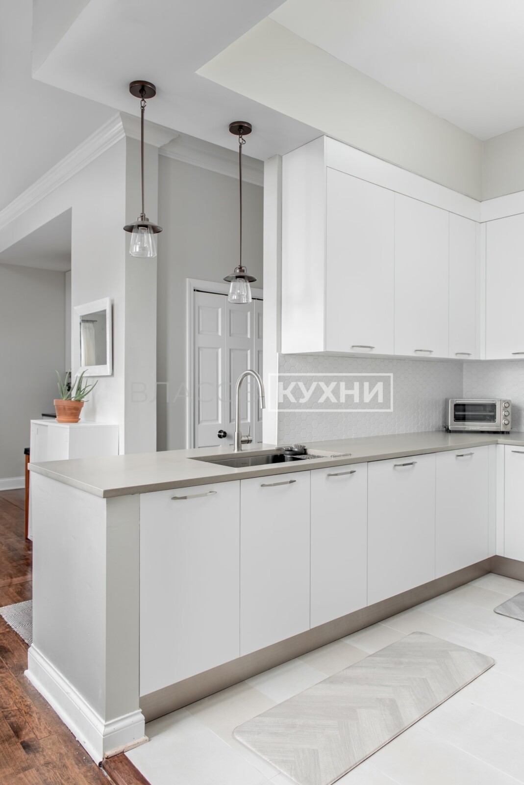 Угловая белая матовая дизайнерская кухня, как в Италии.