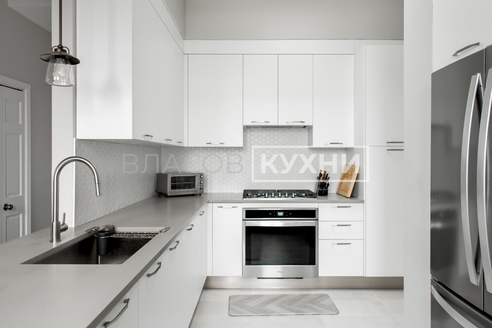 Стильная угловая серая кухня с фасадами Supramat в Минске