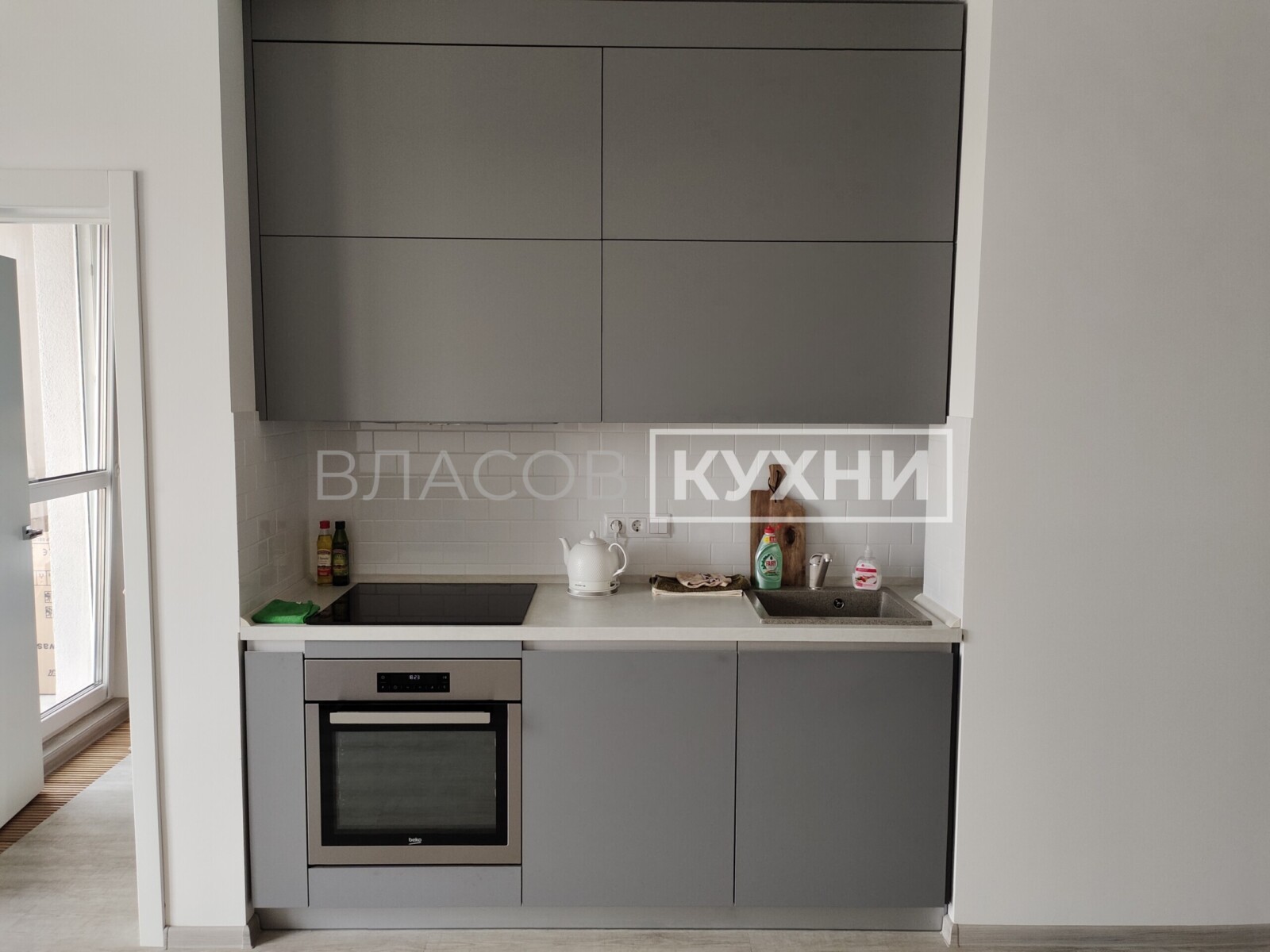 Прямая матовая кухня с фасадами Fenix. Купить, заказать в Минске.
