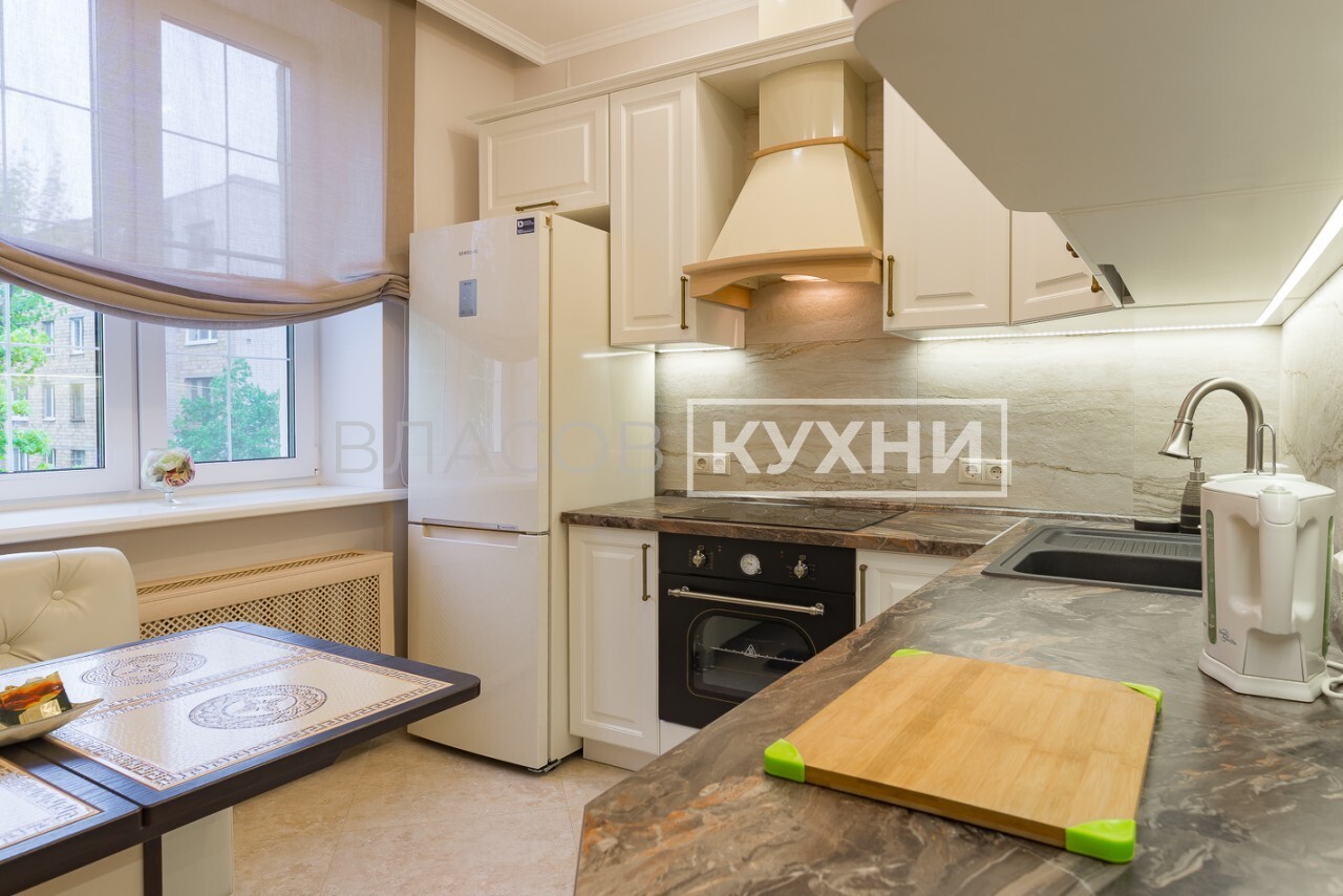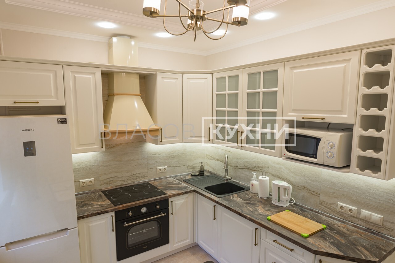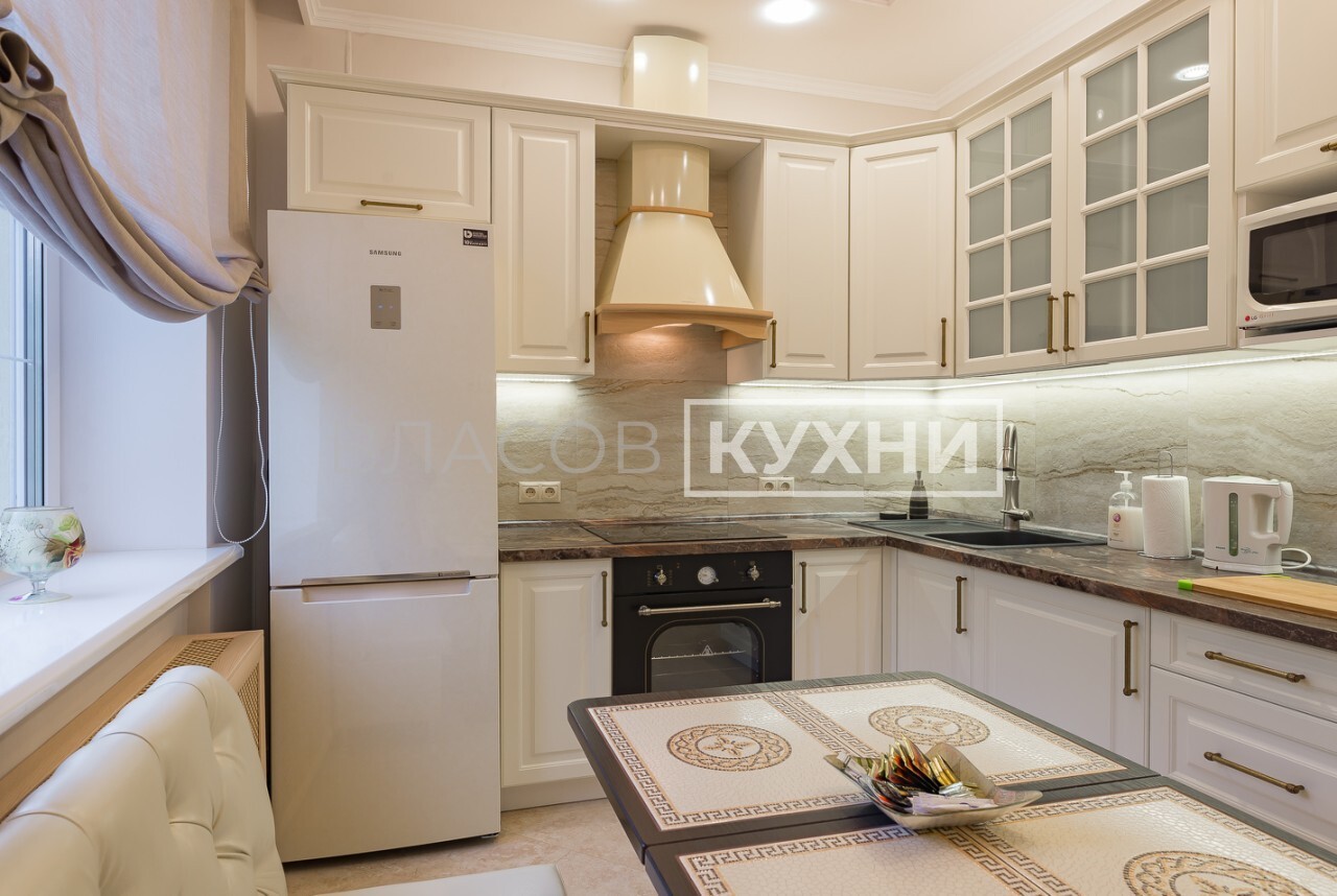 Кухня в классическом стиле в цвете слоновая кость