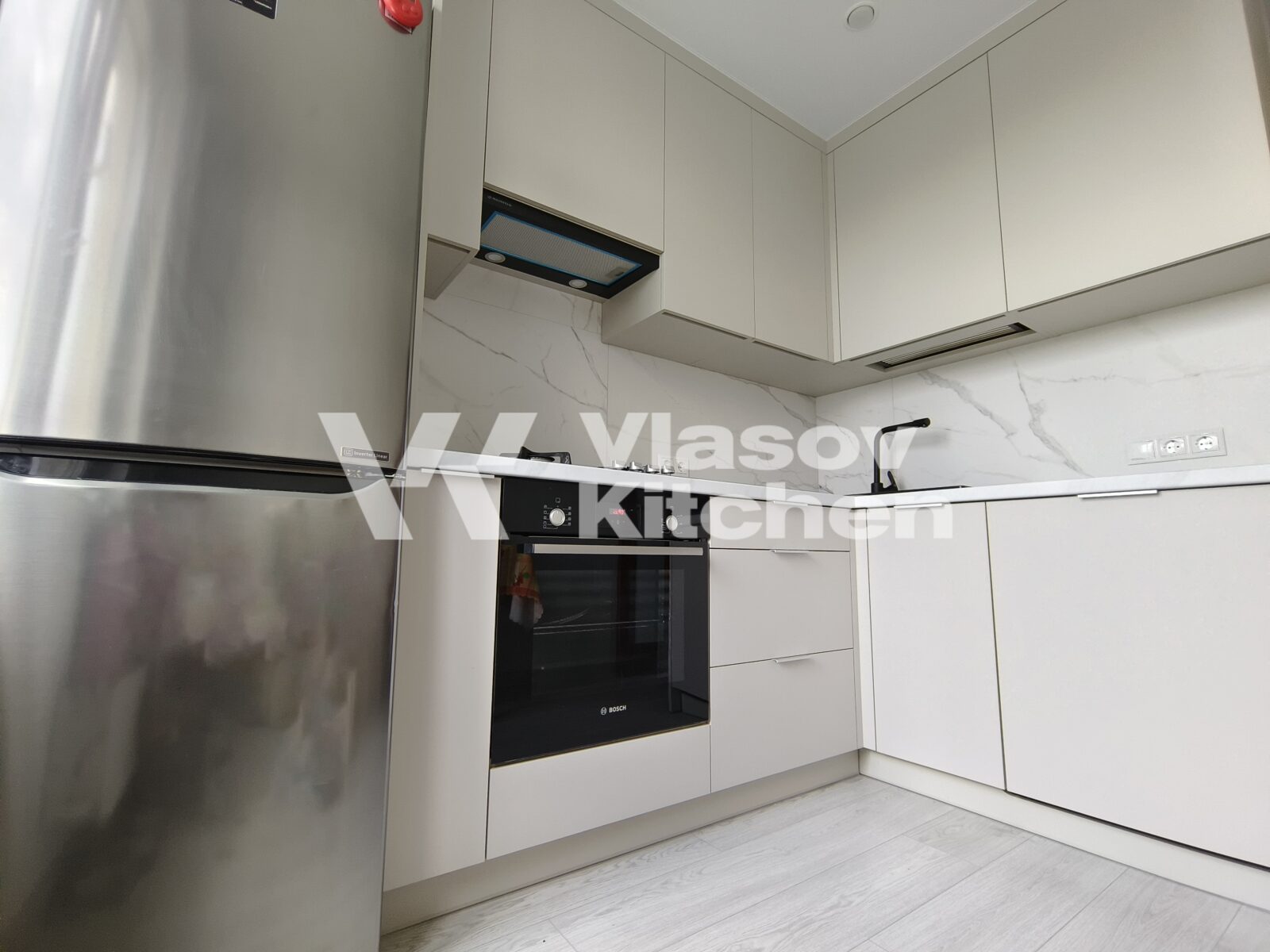 Угловая матовая кухня в Минске по индивидуальным размерам. Купить.