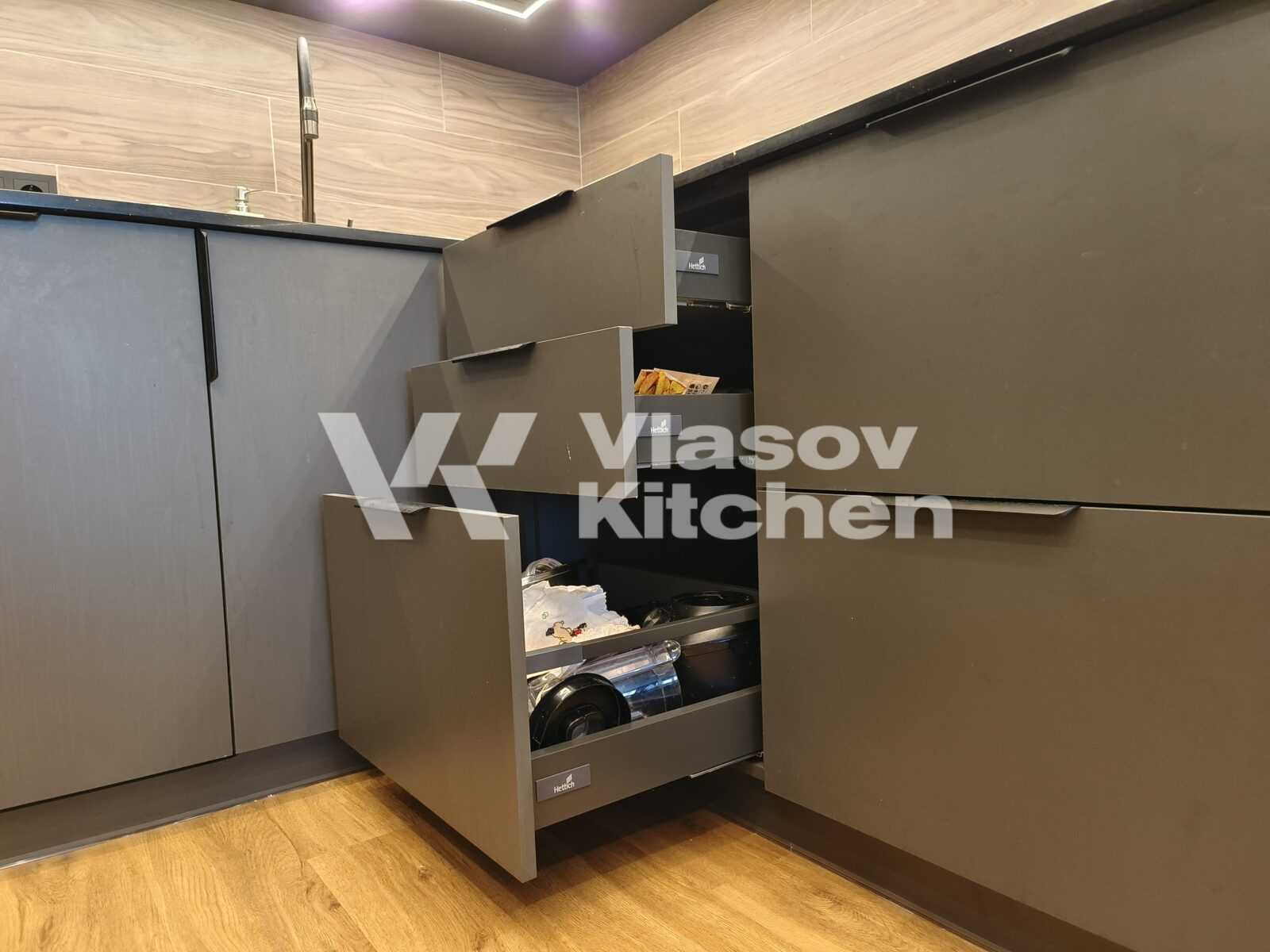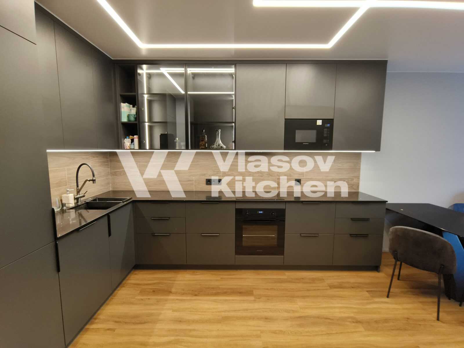 Угловая матовая серая кухня в ЖК "Парк Челюскинцев". Заказать кухню в Минске. Кухни на заказ Минск